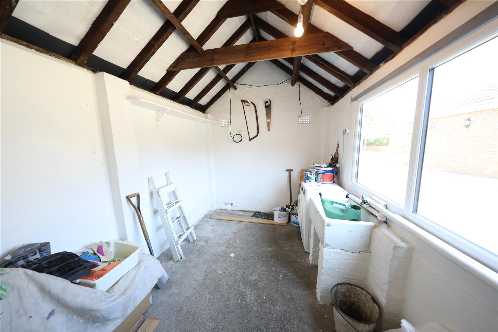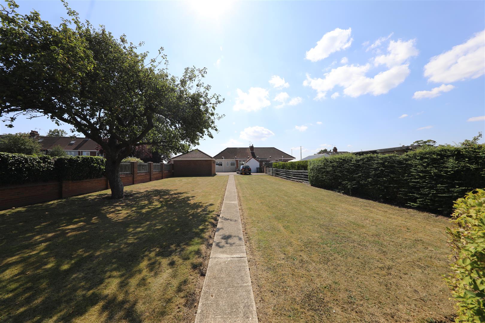 Externally, the space is truly exceptional. A huge lawned rear garden is filled with a variety of well kept shrubs and mature planting, along with a vegetable patch and a brick built outbuilding that was once used to house pigs. There’s also a separate utility/wash room and a well maintained concrete yard. The property benefits from a double garage with power supply, plus a large driveway providing off-street parking for multiple vehicles.
